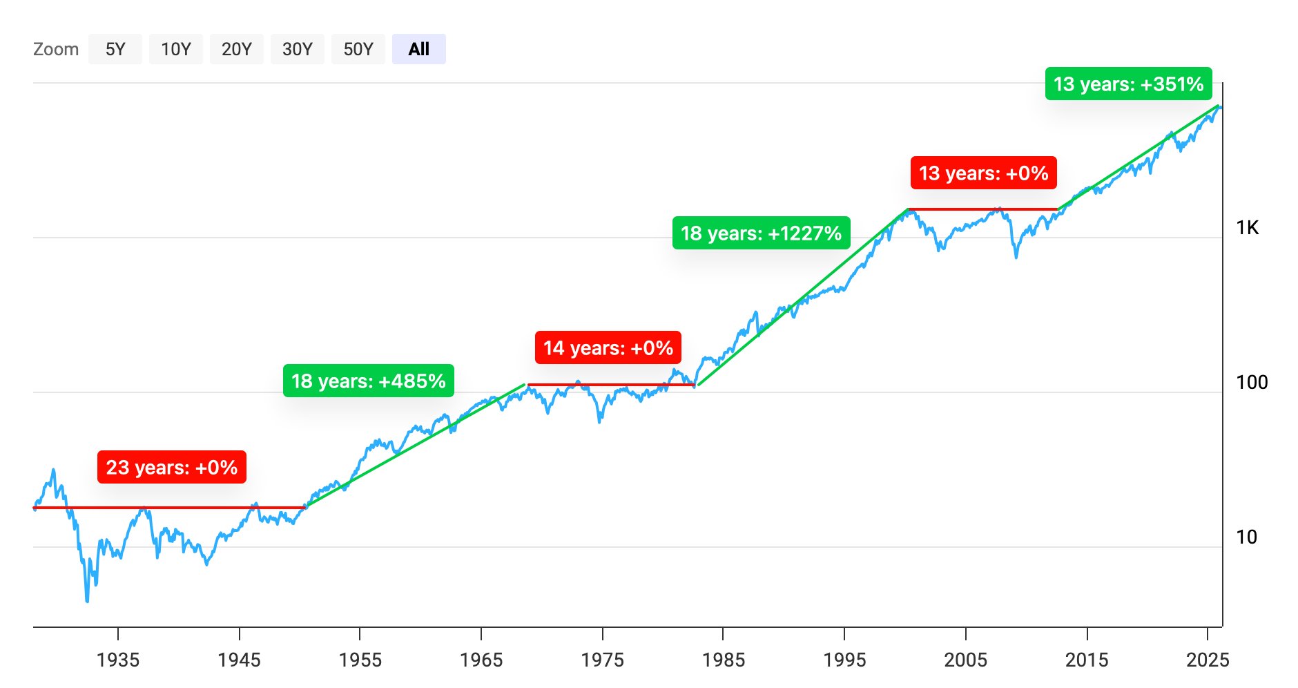 But long, beautiful runs like this often end the same way—with a season of disappointment for the dominant asset class. It’s called a lost decade.